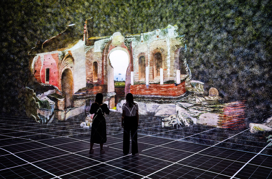 Félve, de talán mondhatjuk, hogy igen, ez így igazából két alkotás: egyrészt Csontváry munkáit látjuk, másrészt a kortárs digitális művészek munkáját. A csapat kifejezetten intermédiás megközelítést alkalmazott, ami tudatos döntés volt. Ez szükséges volt ahhoz, hogy a sokdimenziós vetített térben hiteles és erős művészi tartalom jöjjön létre. Emellé a művészek úgy léptek oda, hogy nem rivalizálni akarnak Csontváry művészetével, hanem a saját eszközeikkel megmutatni, hogyan lehet ilyen módon bemutatni egy klasszikus festőt. Ez nagyon érdekessé és egyénivé teszi az egész produkciót.