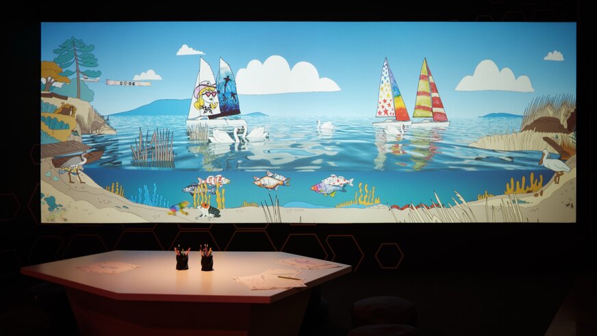 Az első egy „Balaton élővilága" tematikájú vetítés, ahol halakat, siklókat, békákat és vitorlás hajókat lehet kiszínezni. Ezt nagyon szeretik a gyerekek, hiszen egy hosszú vetítésben folyamatosan épül a kép és a résztvetők rajzaitól lesz egyre gazdagabb az adott nap végére. A második egy karácsonyi színező volt, a harmadik jelenet pedig egy jazz zenekart ábrázol, ahol különböző hangszereket, például szaxofont vagy dobot lehet kiszínezni. Ezután lehetőség van beszkennelni a rajzot és az adott hangszer bekerül az installáción egy-egy zenész kezébe.