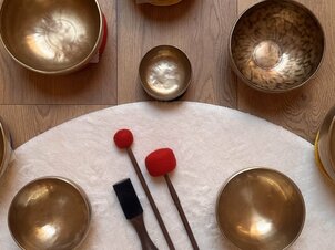 A csoportos, 60/90 perces hangutazások relaxációs gyakorlattal/rövid vezetett tematikus meditációval kezdődnek, és teázással zárulnak.