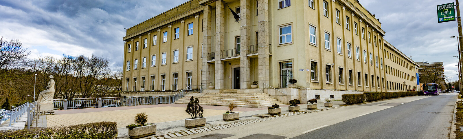 The University's center located in Veszprém, with campus buildings in several locations. The administration is located in Building B, at 10 Egyetem Street. The campus can be reached directly by local buses 2, 4, 4A, 6, 8, 8A, with the closest stops to the lower campus on Egyetem Street being Komakút Square and Acticity, and to the upper campus on Wartha Vince Street being Szegfű Street.